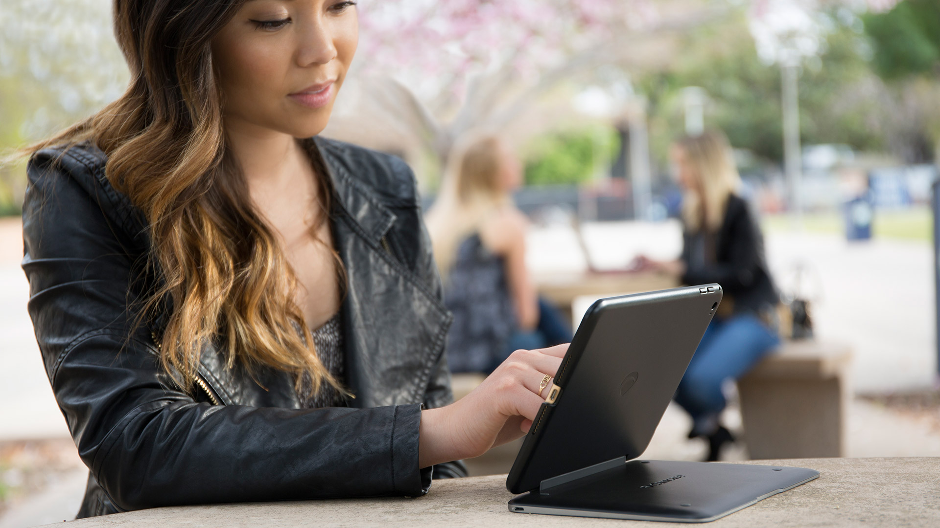 I especially appreciate the articulation capabilities this case offers for the various ways I use my device. In addition to being great for standard typing, it also is great for reading while sitting in my lap. While laying down, I articulate it flat to add additional height to prop on my chest so I don't have the fatigue of holding the iPad for long periods of time. Flipped all the way back I can easily draw using my bluetooth stylus. The added benefit for me is that it fits inside my 7" Platinum - zippered sleeve that holds my cables and stylus which I had purchased to protect my iPad while traveling until I could get a keyboard case.